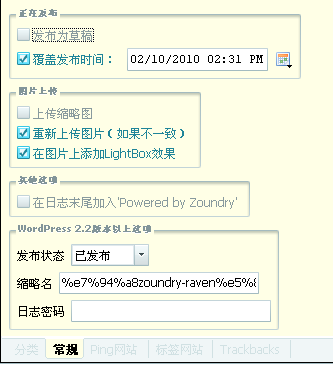 其中最好的优化是wp的slug(日志的缩略名),wlw和ScribeFire都不支持的,但是在Zoundry Raven里你可以方便设置。